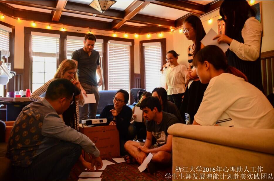 浙江大学交流团的同学们踊跃提问,与The Bridge的成员进行了更为深入的交流。一个有趣的发现是The Bridge的成员组成结构与国内心理类社团成员组成结构非常相似,用他们自己的话说就是一个男生至少被10个女生包围着。同时,The Bridge的成员都有一个共识,即在任何时间学生们遇到任何困难时,成员都应本着人本主义的态度为学生提供及时有效的辅导。他们用自己的专业知识和真挚的情感为学生提供包括学习、恋爱、社交等等各方面的辅导。