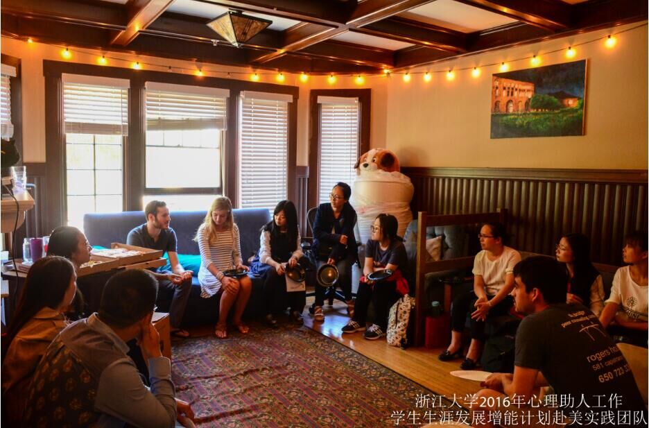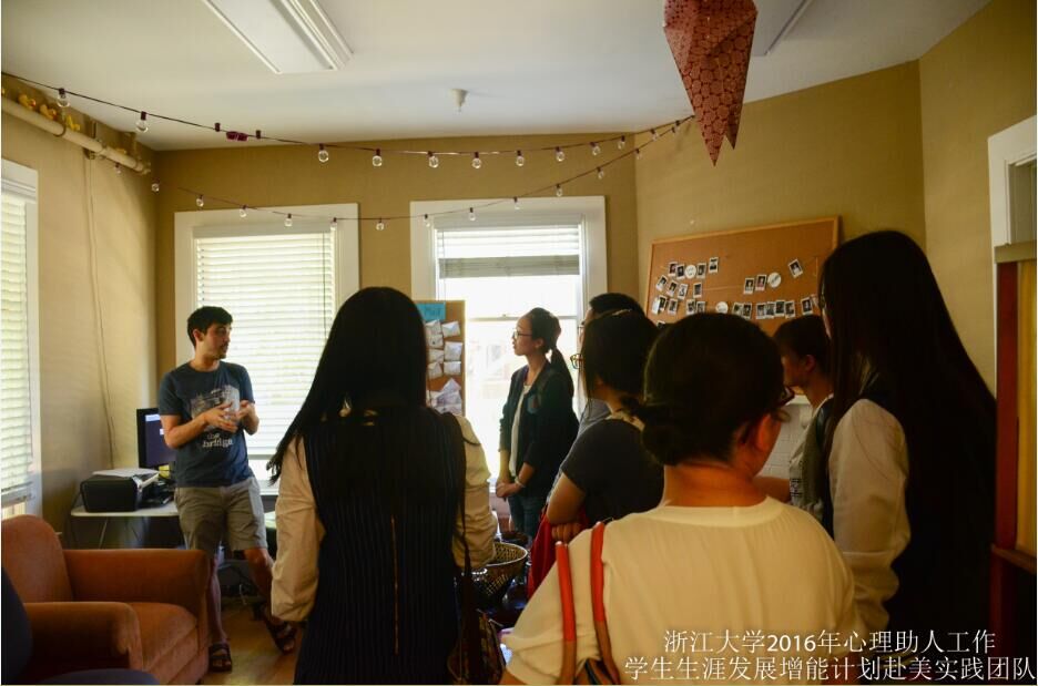 斯坦福大学的朋辈心理咨询组织(Peer Counseling Center)“The Bridge”的三位朋辈心理咨询员热情地接待了我们,并进行了愉快地交流。首先,社团成员为我们详细介绍了社团历史与主要工作。该组织是由斯坦福大学的学生发起的,旨在为同学提供免费朋辈心理辅导。The Bridge位于校园里一个凉爽舒适的小建筑中,室内布置温馨,给予来访学生家庭般的温暖。令人惊叹的是,The Bridge是一个独立运行的学生组织,有独立的经费来源,与学校的心理咨询中心无隶属关系。他们在工作日的工作时间对外开放接待咨询,一周七天24小时的免费电话咨询服务。