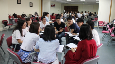 在培训的最后,心理中心的专职咨询师金真皓老师为辅导员们设计了“积极取向的结构化团体体验”。在学生工作中,辅导员自身的心理健康状态非常重要,甚至会对学生的状态产生影响,发现自己身上的积极品质对于保持良好的心理健康状态非常有帮助。同时团体辅导作为一种干预手段,能够有效地帮助学生解决一些常见的心理问题。因此作为培训的结束,辅导员们亲自参与体验了积极取向的团体辅导活动。